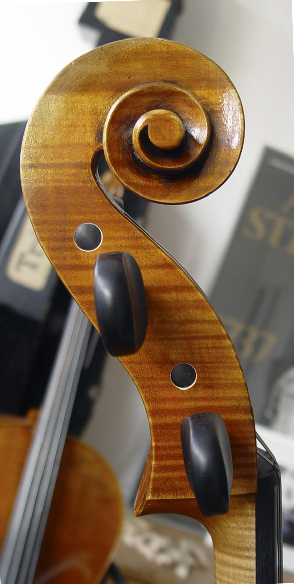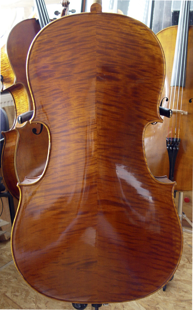 The IESTA Luthier instruments are manufactured at customer’s special option. The entire or separated back is made of Bosnian maple, the top is Austrian spruce. Auburn oil varnish on warm background.